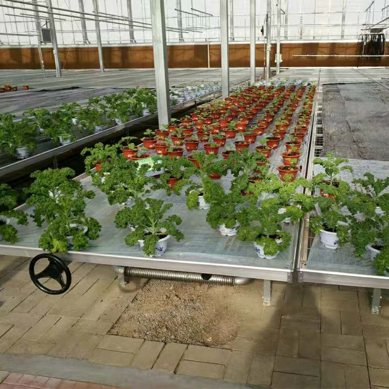 潮汐苗床是由潮汐盘、滚动轴、支架、苗床边框、手摇轮、横支撑、斜拉杆组合而成。潮汐盘材质为ABS材质,防腐性能高,承重能力好,寿命长。